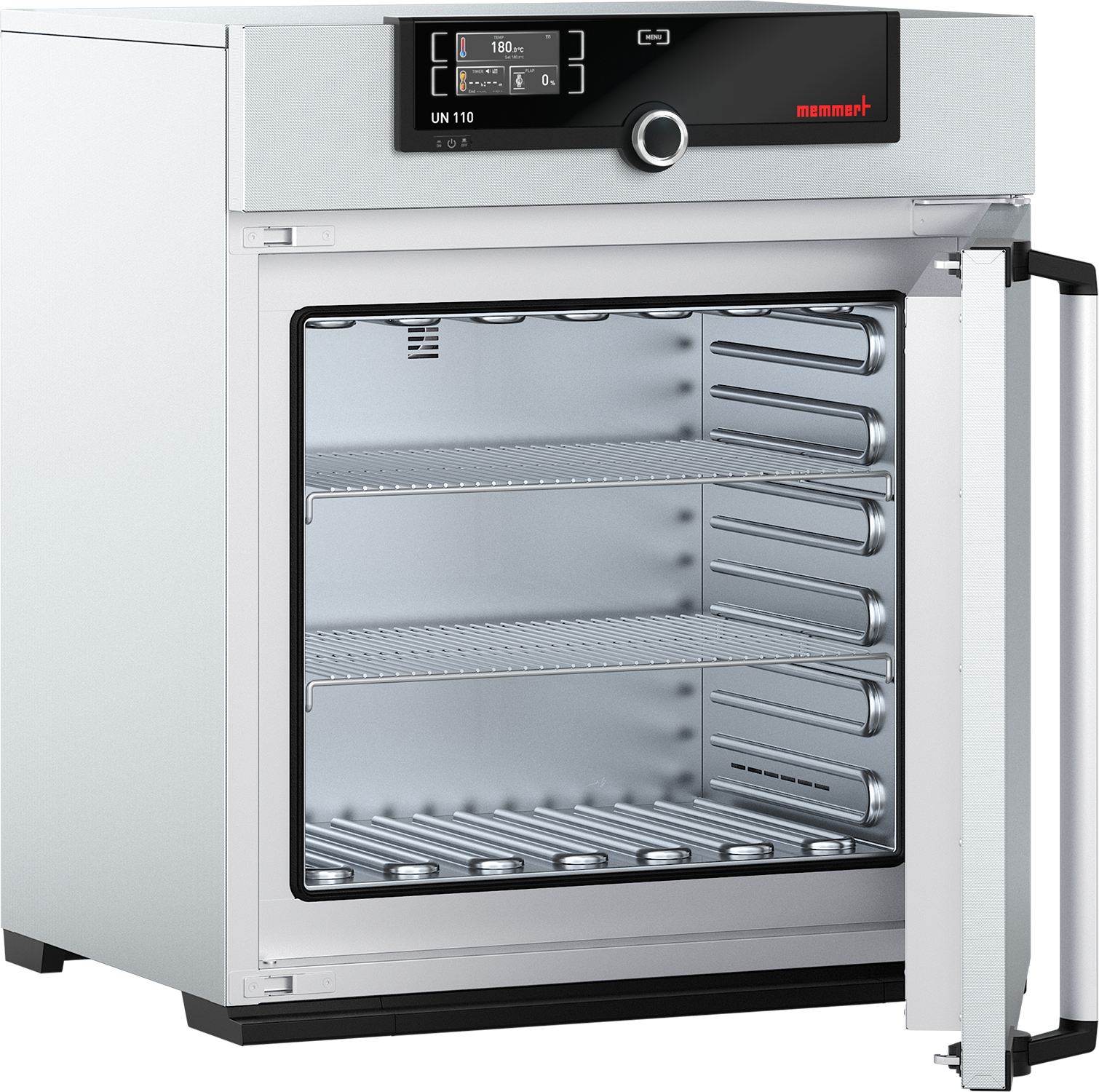 The Memmert UN110 is a reliable, high-precision universal oven with natural convection, perfect for drying, heating, ageing, burn-in, and sterilisation in laboratories and industry. Featuring Memmert’s intuitive TwinDISPLAY ControlCOCKPIT, premium stainless steel construction, and excellent temperature uniformity, this 108-liter model provides gentle, fan-free heating up to +300°C – ideal for temperature-sensitive samples.