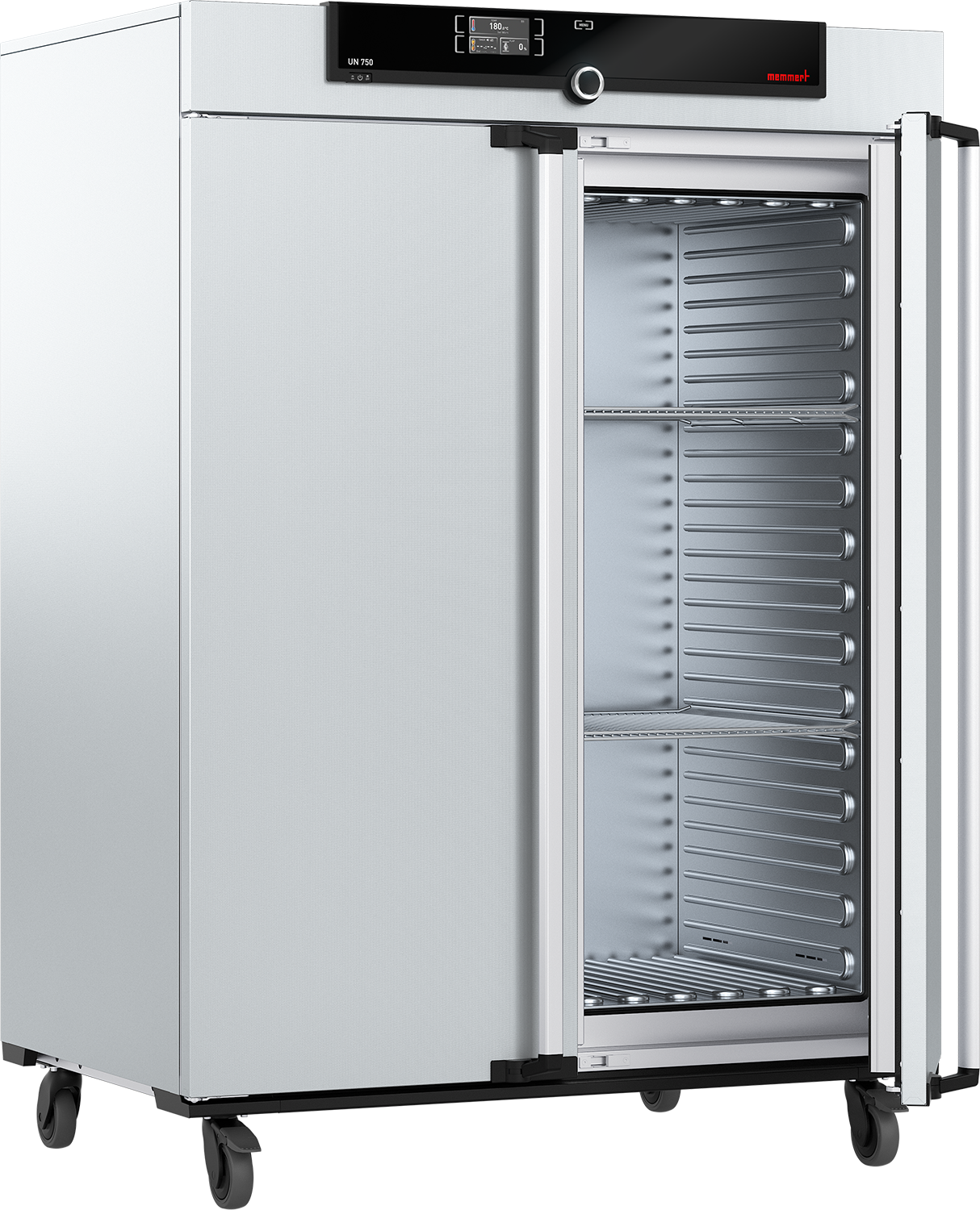 The Memmert UN750 is a high-capacity universal oven with natural convection, engineered for precise drying, heating, ageing, burn-in, and heat-treatment processes in laboratories and industrial environments. Featuring Memmert’s advanced TwinDISPLAY ControlCOCKPIT, stainless steel construction, and excellent temperature uniformity, this 749-liter model ensures reliable, gentle airflow for temperature-sensitive materials up to +300°C.